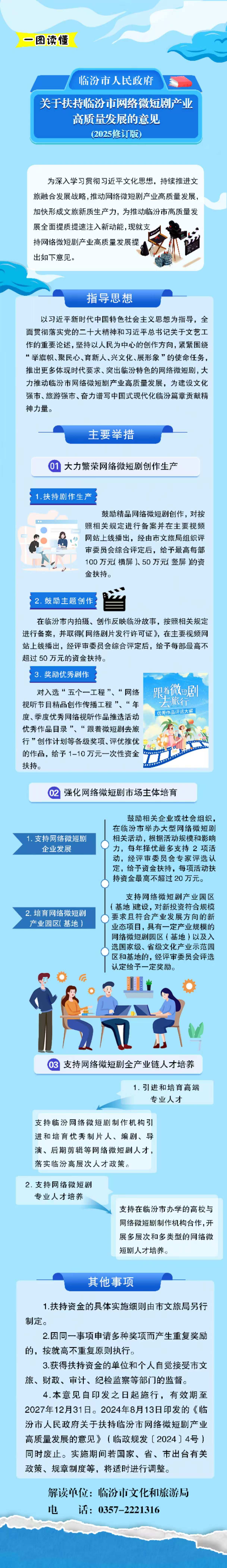 【圖解】臨汾市人民政府關(guān)于扶持臨汾市網(wǎng)絡微短劇產(chǎn)業(yè)高質(zhì)量發(fā)展的意見
